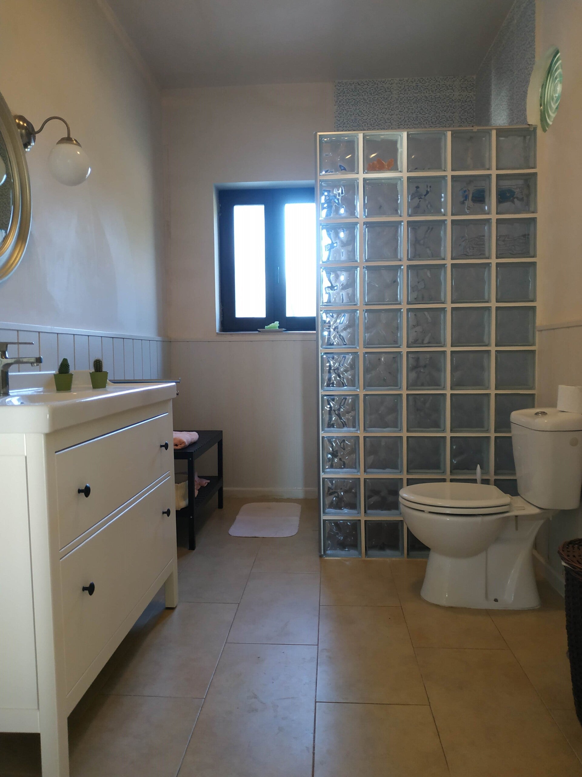 La casa rural Rio Mula cuenta con 2 baños, uno situado dentro y otro afuera en la zona de la piscina.